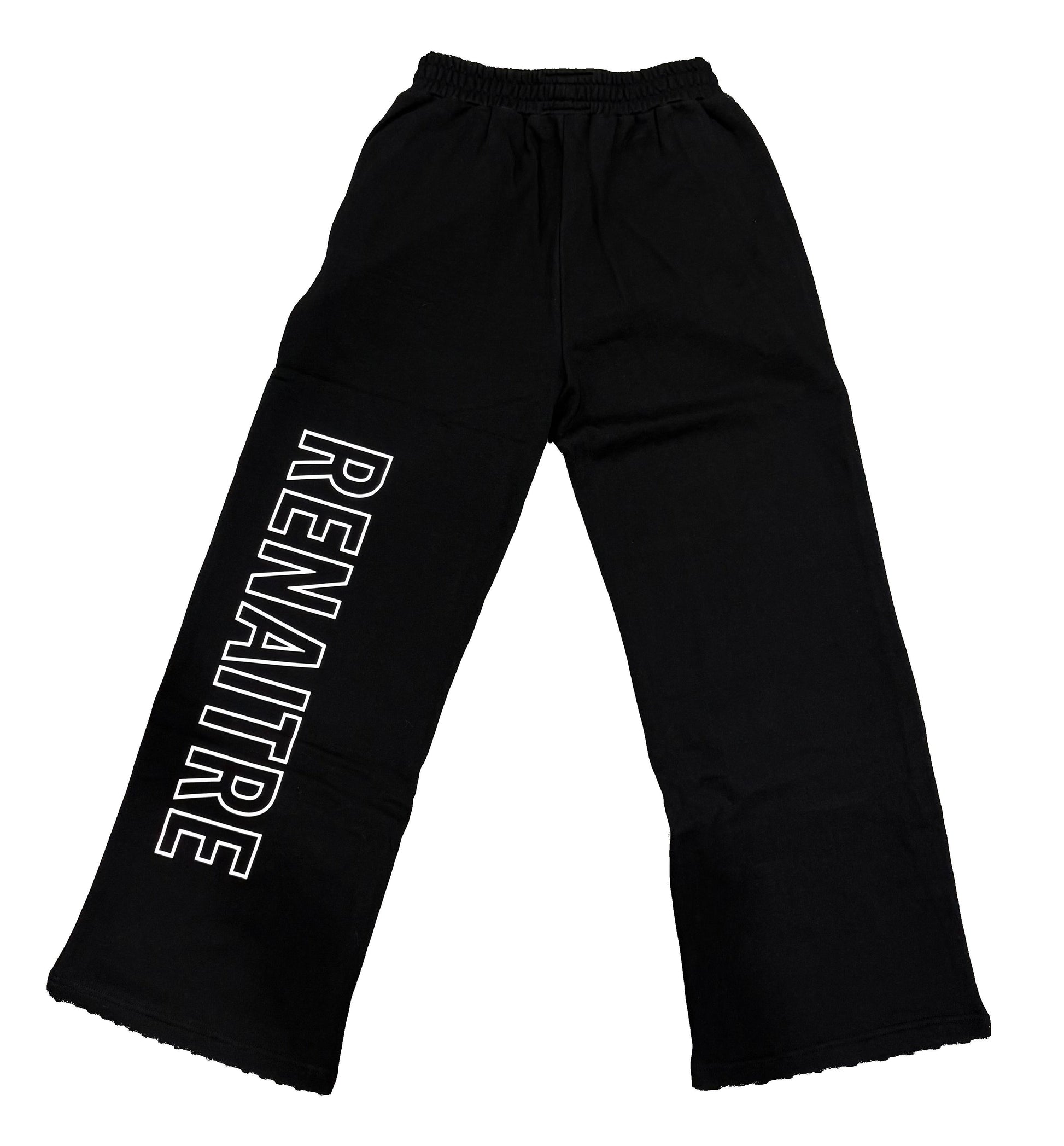 The Allure Renaitre sweats features a heavyweight, wide-leg fit with vertical branding printed on the front and back of the left leg.